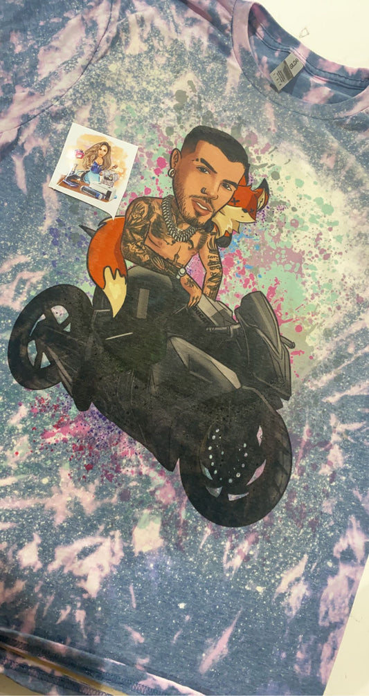 Rauw Alejandro & Rosalia indigo Bleached tee